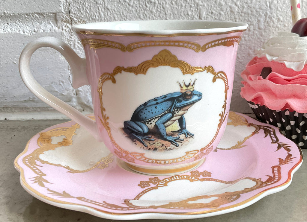 Frog Prince Tea Set, 7 or 11 Pieces, Food Safe and Durable. Vegan Bone China.